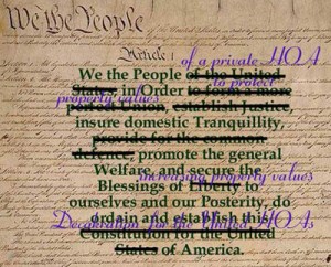 The Carpenter Hazlewood Delgado & Wood blog of Jan. 18, 2011, written by Scott Carpenter, “HB2441 – CC&R Amendments,” argues: “This change would enable community association to change their documents without onerous approval requirements that count a failure to participate as a ‘no’ vote.” (Emphasis added). The exercise of the democratic right to vote and to protect one’s private property is considered “onerous” by the CAI Legislative Action Committee co-chair, Scott Carpenter.